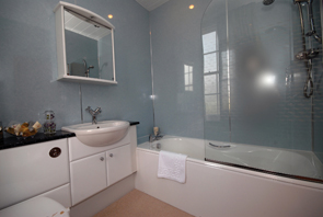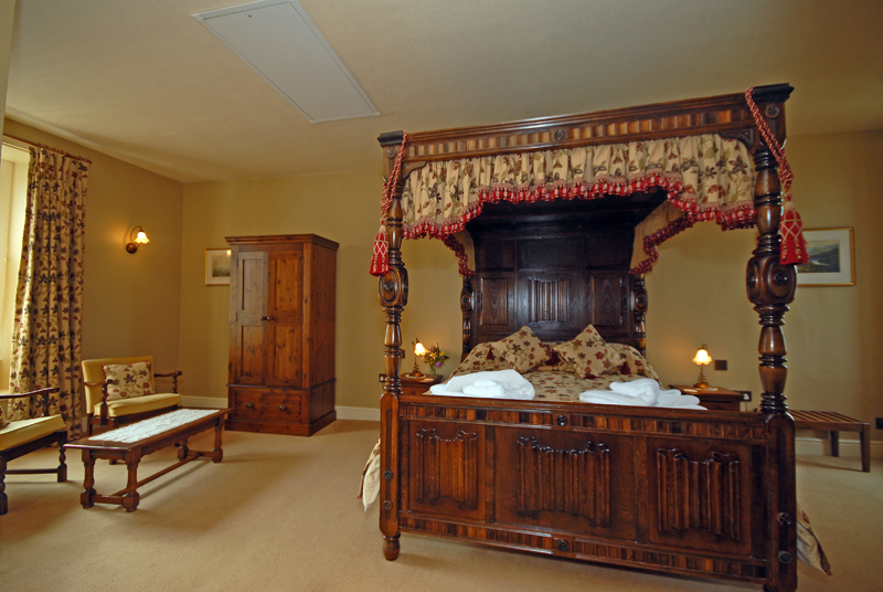 Upstairs the four poster with ensuite bathroom has views across the valley to Low Fell and Carling Knott and on the other side to Lanthwaite woods.
