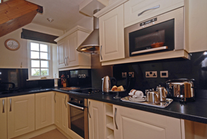 The kitchen, on the site of the old tap room where many a tall story will have been told, has its own window overlooking the garden and nestles in one corner beside the stairs.