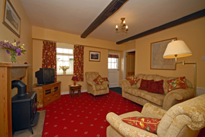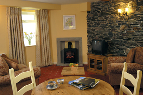 A spacious room, with two walls of the attractive original stonework showing, it contains a comfortable living area furnished to a high standard with a modern kitchen/dining area in one corner.